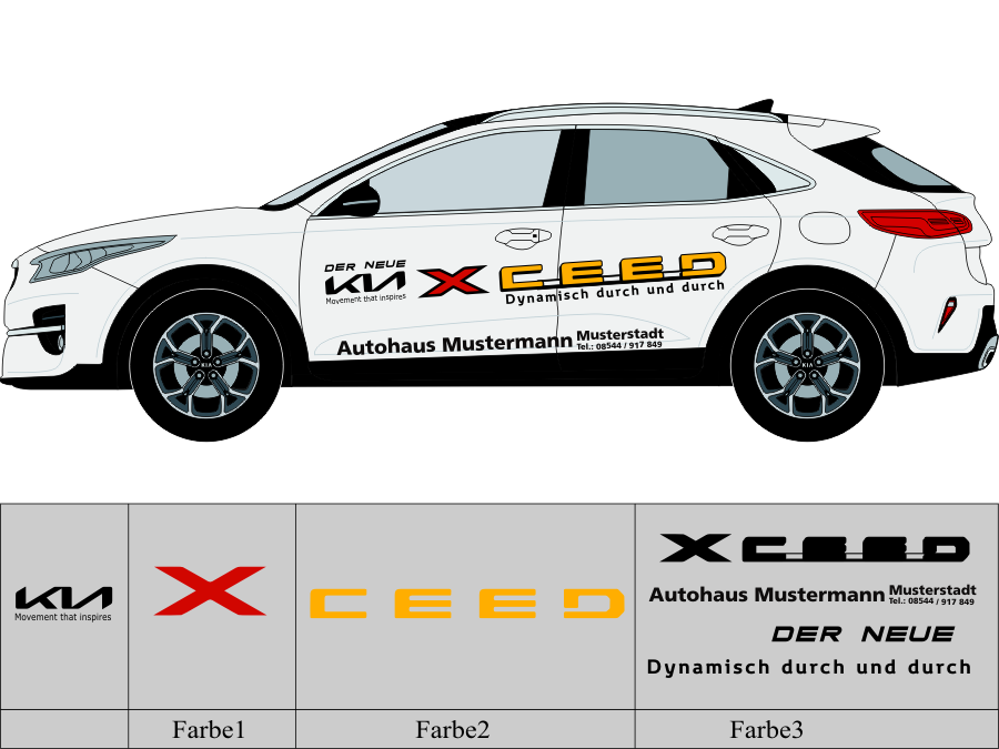Die von uns verwendete Folie ist eine weiche PVC Folie für kurz bis mittelfristige Beschriftungen auf glatten und ebenen Untergründen ( ca. 2-4 Jahre)