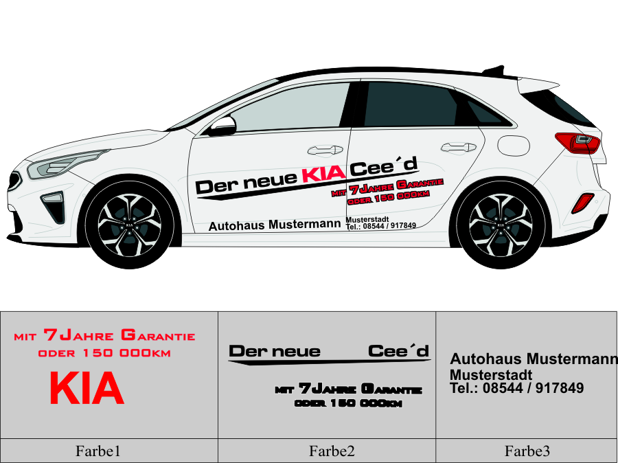 Die von uns verwendete Folie ist eine weiche PVC Folie für kurz bis mittelfristige Beschriftungen auf glatten und ebenen Untergründen ( ca. 2-4 Jahre)