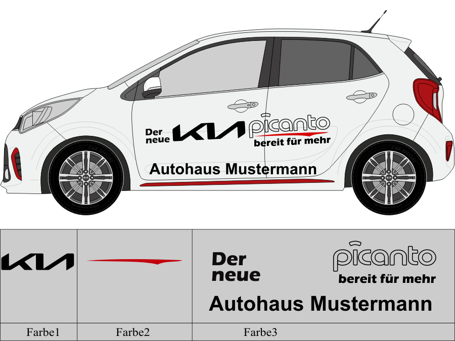 Die von uns verwendete Folie ist eine weiche PVC Folie für kurz bis mittelfristige Beschriftungen auf glatten und ebenen Untergründen ( ca. 2-4 Jahre)
