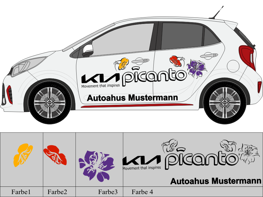 Die von uns verwendete Folie ist eine weiche PVC Folie für kurz bis mittelfristige Beschriftungen auf glatten und ebenen Untergründen ( ca. 2-4 Jahre)