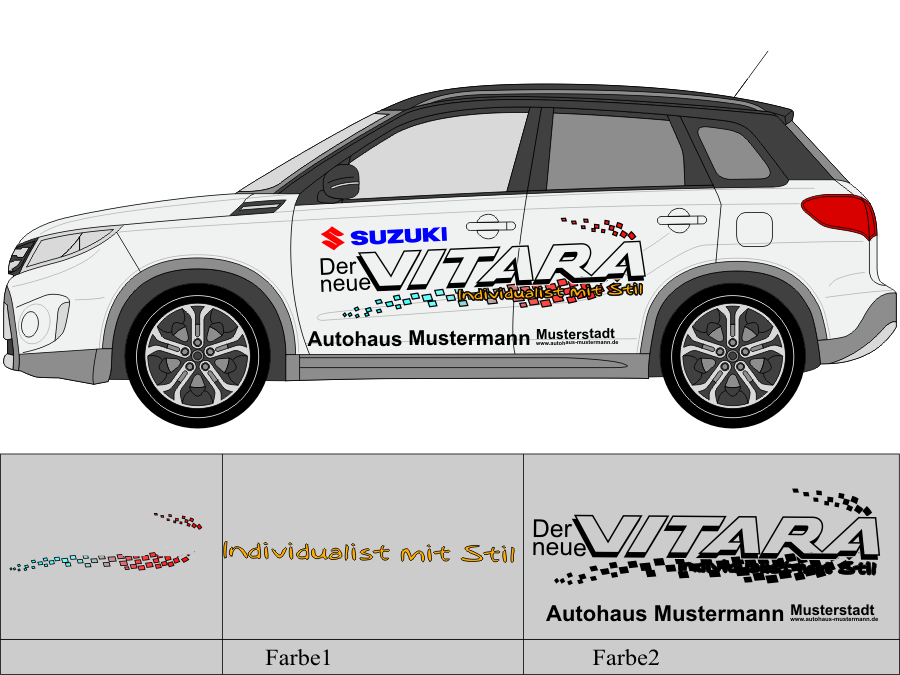 Die von uns verwendete Folie ist eine weiche PVC Folie für kurz bis mittelfristige Beschriftungen auf glatten und ebenen Untergründen ( ca. 2-4 Jahre)