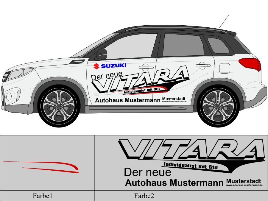 Die von uns verwendete Folie ist eine weiche PVC Folie für kurz bis mittelfristige Beschriftungen auf glatten und ebenen Untergründen ( ca. 2-4 Jahre)
