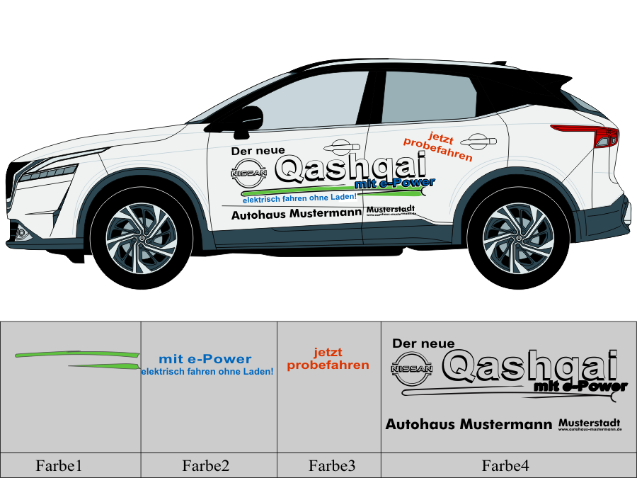Die von uns verwendete Folie ist eine weiche PVC Folie für kurz bis mittelfristige Beschriftungen auf glatten und ebenen Untergründen ( ca. 2-4 Jahre)