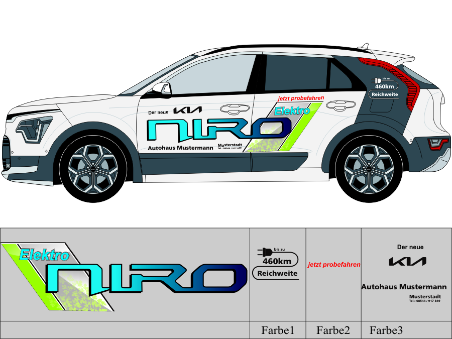 Die von uns verwendete Folie ist eine weiche PVC Folie für kurz bis mittelfristige Beschriftungen auf glatten und ebenen Untergründen ( ca. 2-4 Jahre)