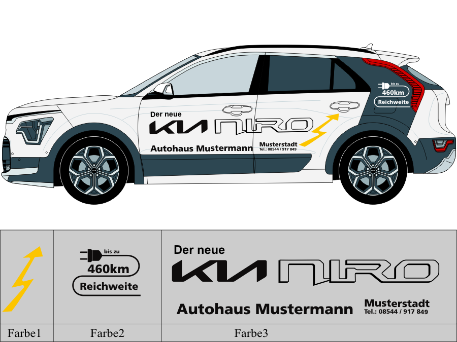 Die von uns verwendete Folie ist eine weiche PVC Folie für kurz bis mittelfristige Beschriftungen auf glatten und ebenen Untergründen ( ca. 2-4 Jahre)
