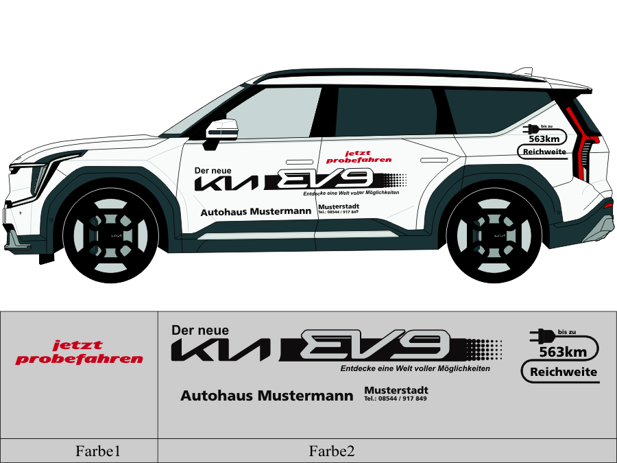 Die von uns verwendete Folie ist eine weiche PVC Folie für kurz bis mittelfristige Beschriftungen auf glatten und ebenen Untergründen ( ca. 2-4 Jahre)