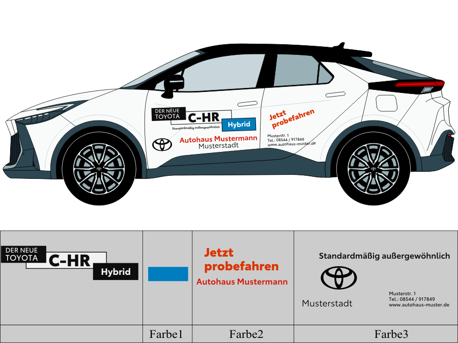Die von uns verwendete Folie ist eine weiche PVC Folie für kurz bis mittelfristige Beschriftungen auf glatten und ebenen Untergründen ( ca. 2-4 Jahre)