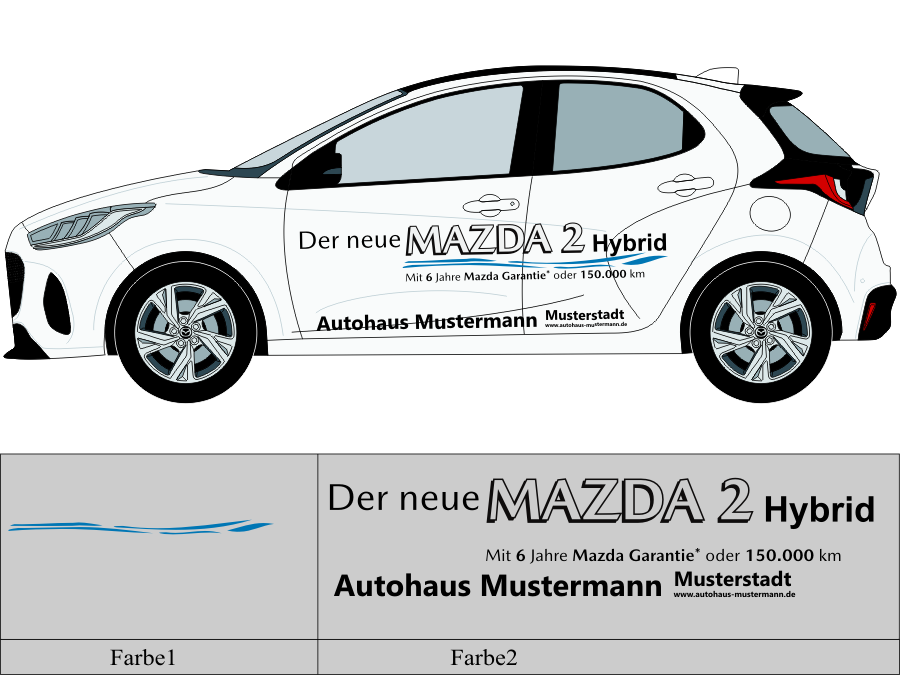 Die von uns verwendete Folie ist eine weiche PVC Folie für kurz bis mittelfristige Beschriftungen auf glatten und ebenen Untergründen ( ca. 2-4 Jahre)