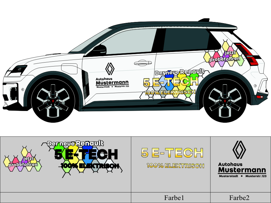Die von uns verwendete Folie ist eine weiche PVC Folie für kurz bis mittelfristige Beschriftungen auf glatten und ebenen Untergründen ( ca. 2-4 Jahre)