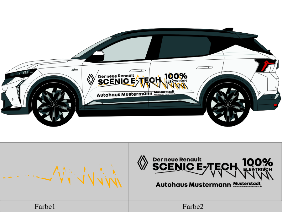 Die von uns verwendete Folie ist eine weiche PVC Folie für kurz bis mittelfristige Beschriftungen auf glatten und ebenen Untergründen ( ca. 2-4 Jahre)