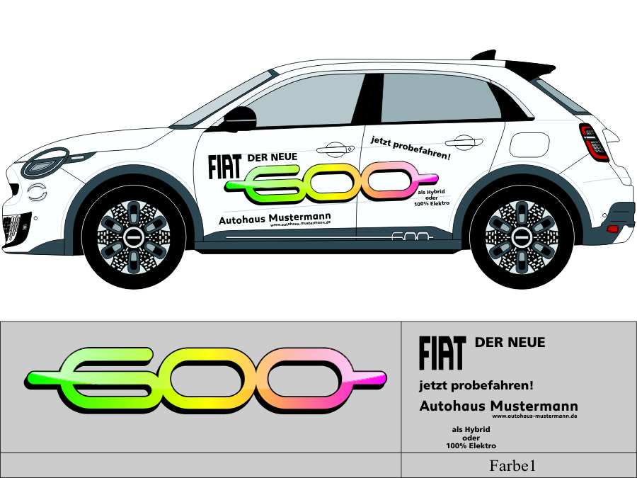 Die von uns verwendete Folie ist eine weiche PVC Folie für kurz bis mittelfristige Beschriftungen auf glatten und ebenen Untergründen ( ca. 2-4 Jahre)