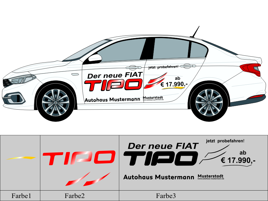 Die von uns verwendete Folie ist eine weiche PVC Folie für kurz bis mittelfristige Beschriftungen auf glatten und ebenen Untergründen ( ca. 2-4 Jahre)