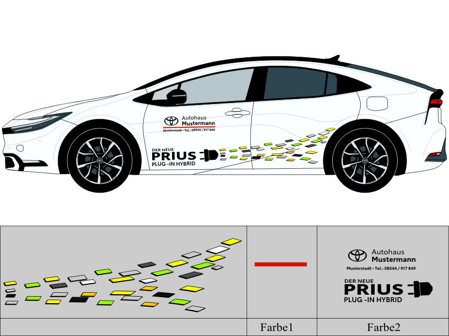 Die von uns verwendete Folie ist eine weiche PVC Folie für kurz bis mittelfristige Beschriftungen auf glatten und ebenen Untergründen ( ca. 2-4 Jahre)