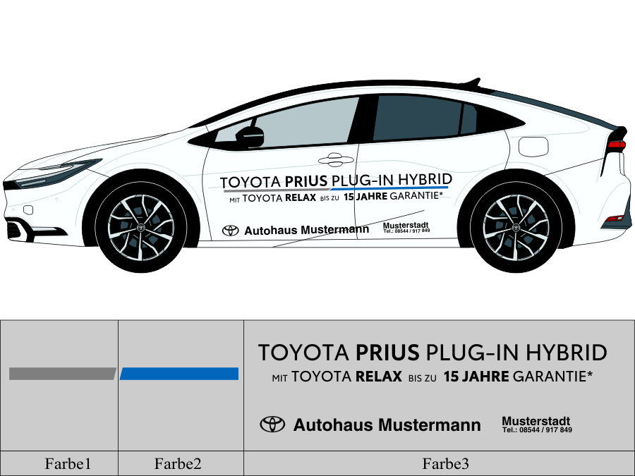 Die von uns verwendete Folie ist eine weiche PVC Folie für kurz bis mittelfristige Beschriftungen auf glatten und ebenen Untergründen ( ca. 2-4 Jahre)
