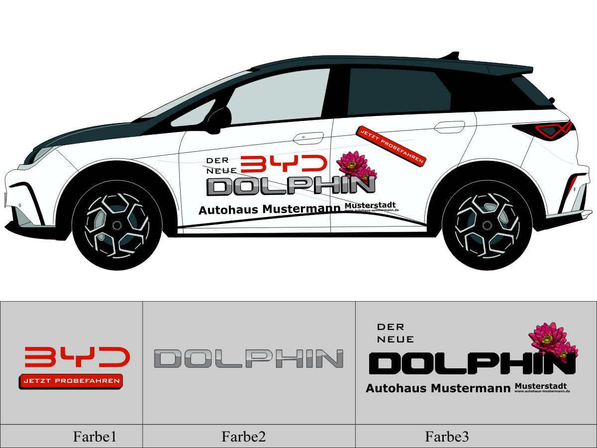 Die von uns verwendete Folie ist eine weiche PVC Folie für kurz bis mittelfristige Beschriftungen auf glatten und ebenen Untergründen ( ca. 2-4 Jahre)