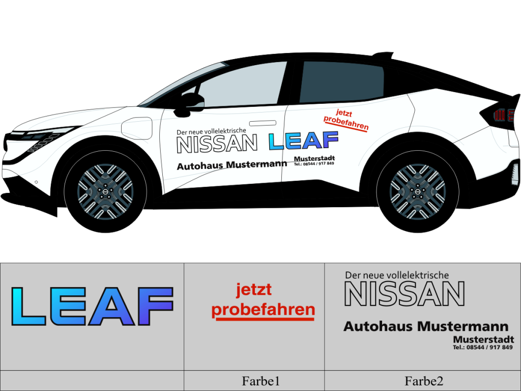 Die von uns verwendete Folie ist eine weiche PVC Folie für kurz bis mittelfristige Beschriftungen auf glatten und ebenen Untergründen ( ca. 2-4 Jahre)