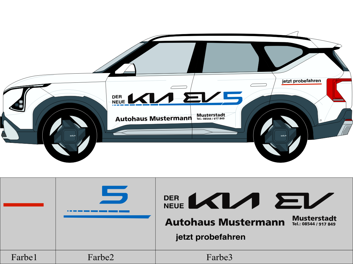 Die von uns verwendete Folie ist eine weiche PVC Folie für kurz bis mittelfristige Beschriftungen auf glatten und ebenen Untergründen ( ca. 2-4 Jahre)