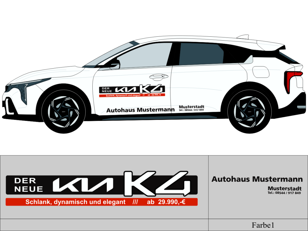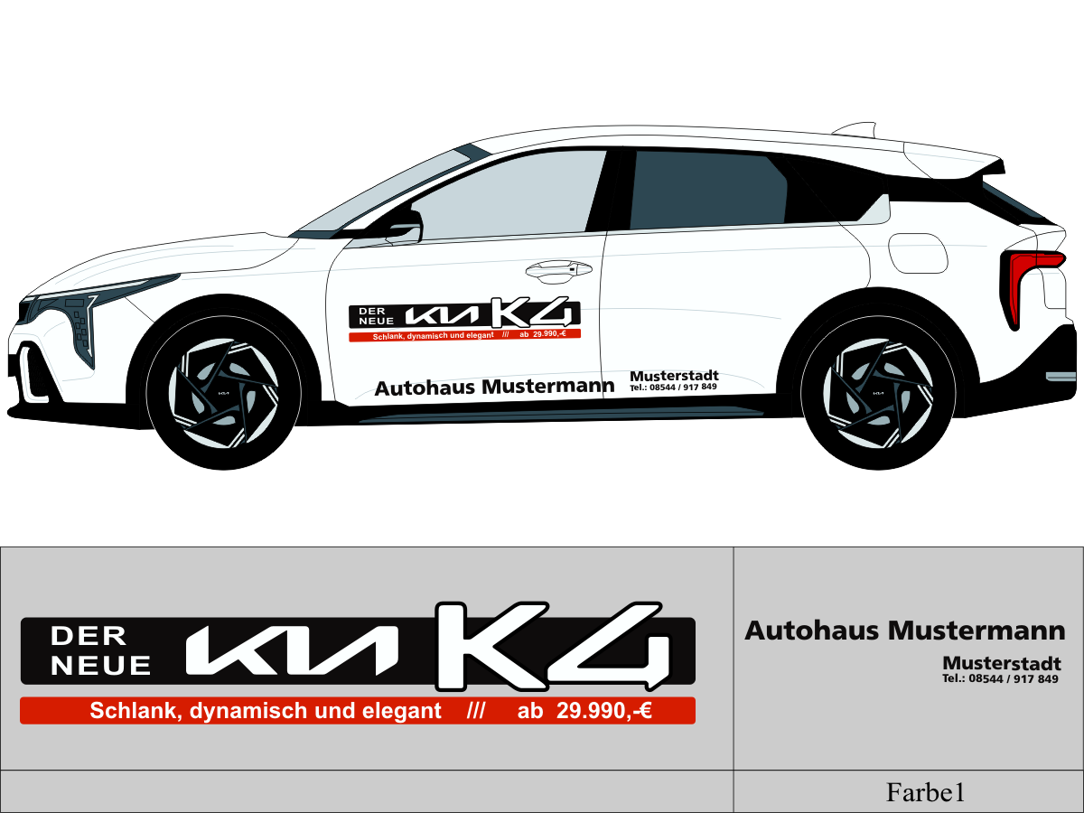 • Bei der Verwendung von einem eigenen Firmenschriftzug, benötigen wir diesen als importierbare Vektorgrafik alternativ in einer guten Auflösung hier fallen einmalig Digitalisierungskosten an. Ihr Schriftzug wird bis auf Wiederruf bei uns abgespeichert